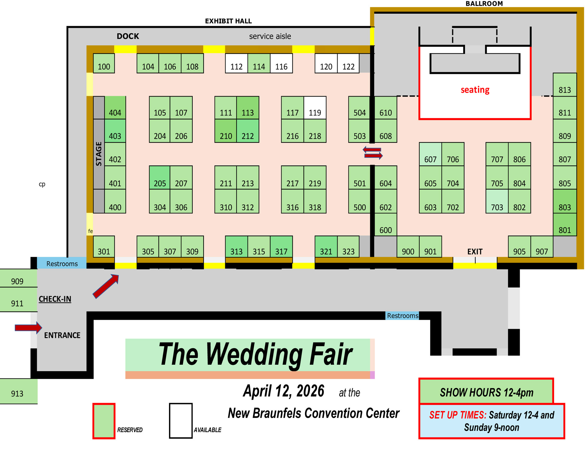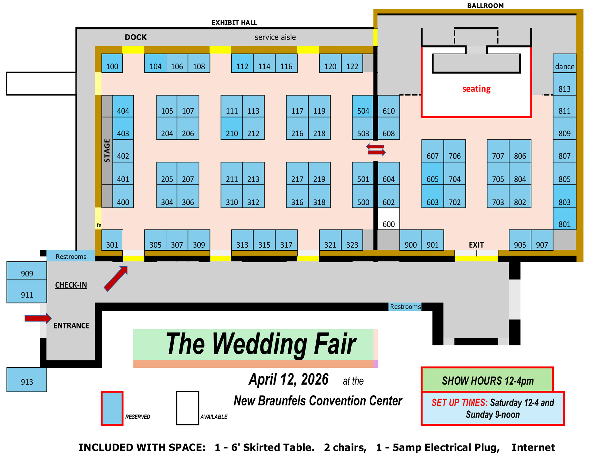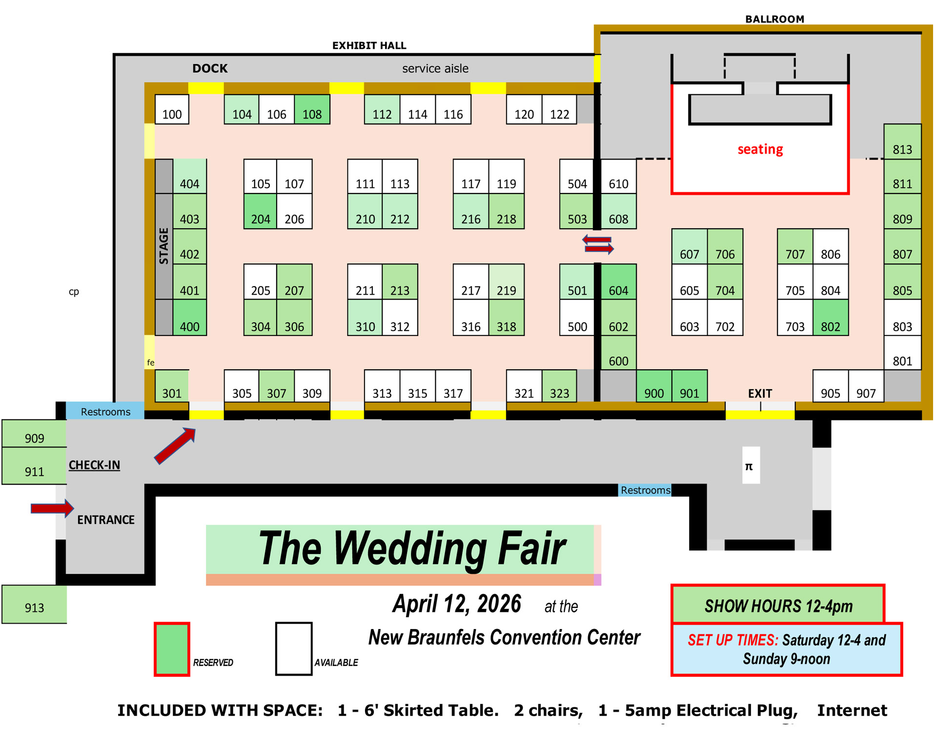 All spaces are 10×10 and Included: